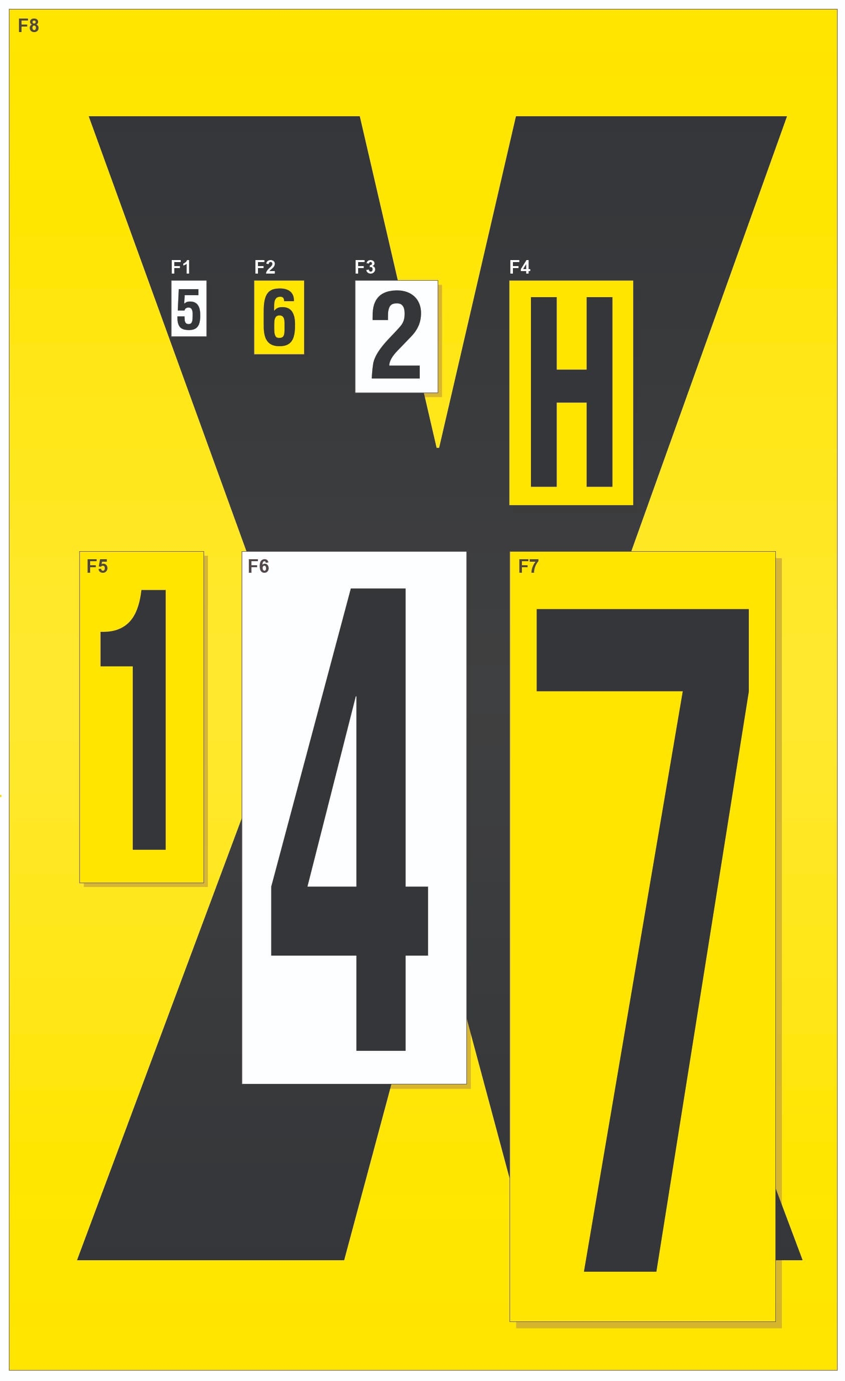 BW-F4-B | Samolepicí písmena – znak ''B'', žlutý podklad, 12 znaků na kartě |