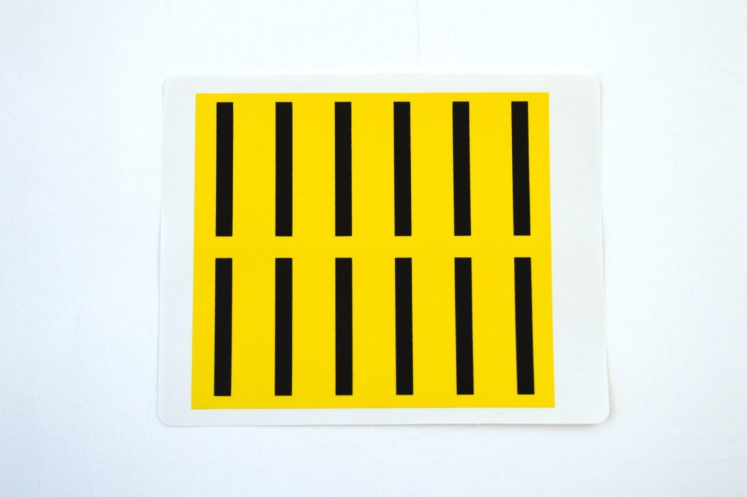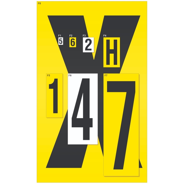 Znaky jsou dodávány v osmi velikostech na žlutém nebo bílém podkladu.