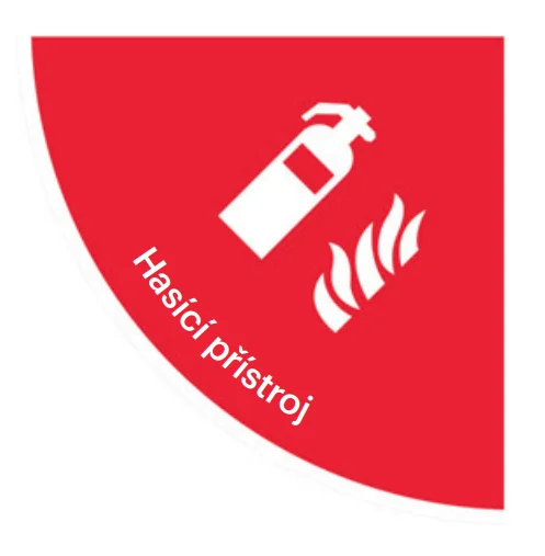 AT-SD01.PA01.750 | Samolepicí plošné protiskluzové značení (čtvrtkruh), ''hasicí přístroj'' – PVC, 750×750 mm |