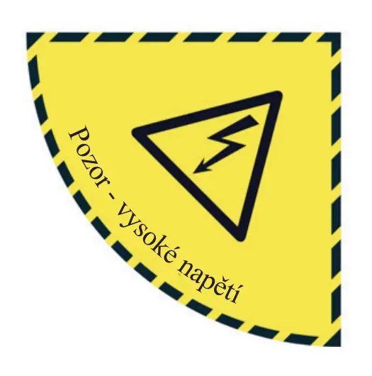 AT-SD08.FK29.750 | Samolepicí plošné protiskluzové značení (čtvrtkruh), ''pozor, vysoké napětí'' – fólie, 750×750 mm |