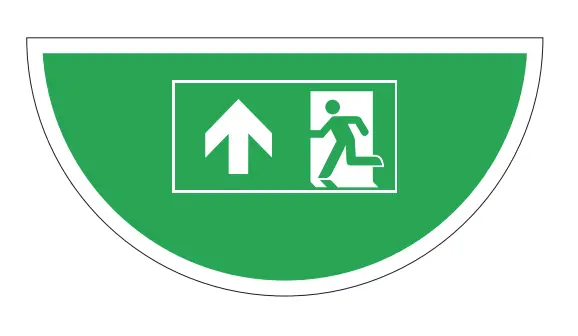 Samolepicí plošné protiskluzové značení (půlkruh), úniková cesta – luminiscenční fólie, 750×375 mm