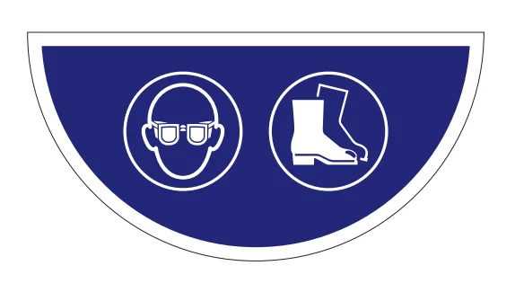 AT-SH10.FK29.750 | Samolepicí plošné protiskluzové značení (půlkruh), použijte ochranu očí a nohou – fólie, 750x375 mm |