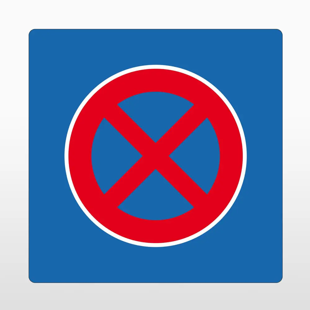 AT-5415.10.1.07.B400 | Samolepicí protiskluzové značení na vozovky, zákaz zastavení – PVC, modrá, 400×400 mm |