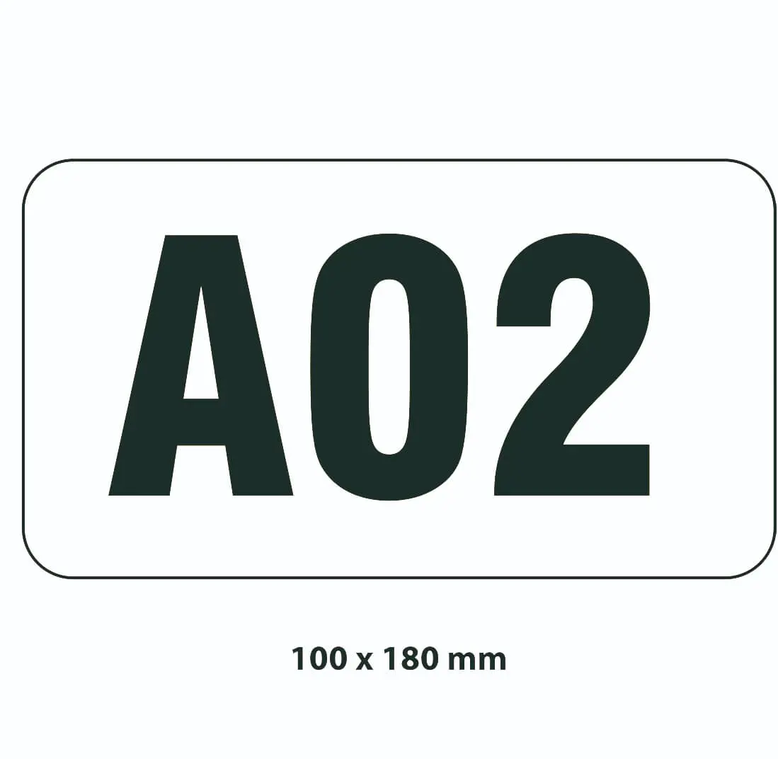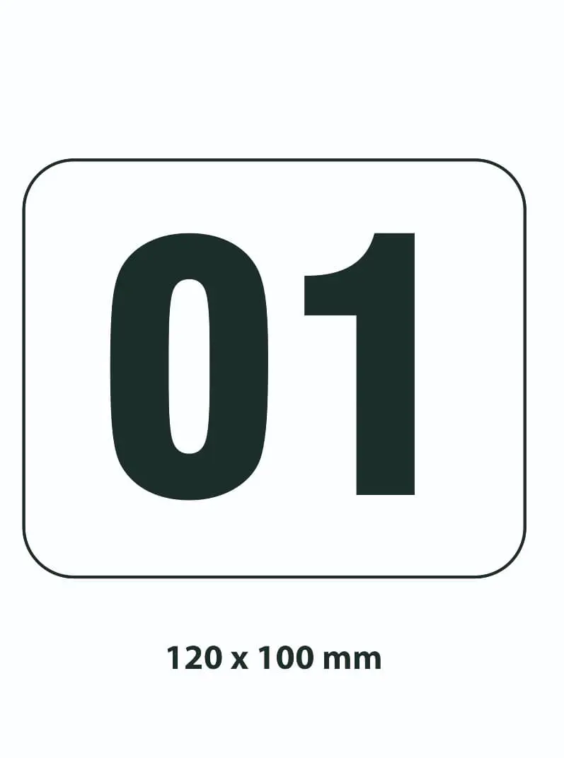 AT-LB87.CA01.100-120 | Samolepicí značení skladovacích míst – polykarbonát, černo‐bílá, 120×100 mm |