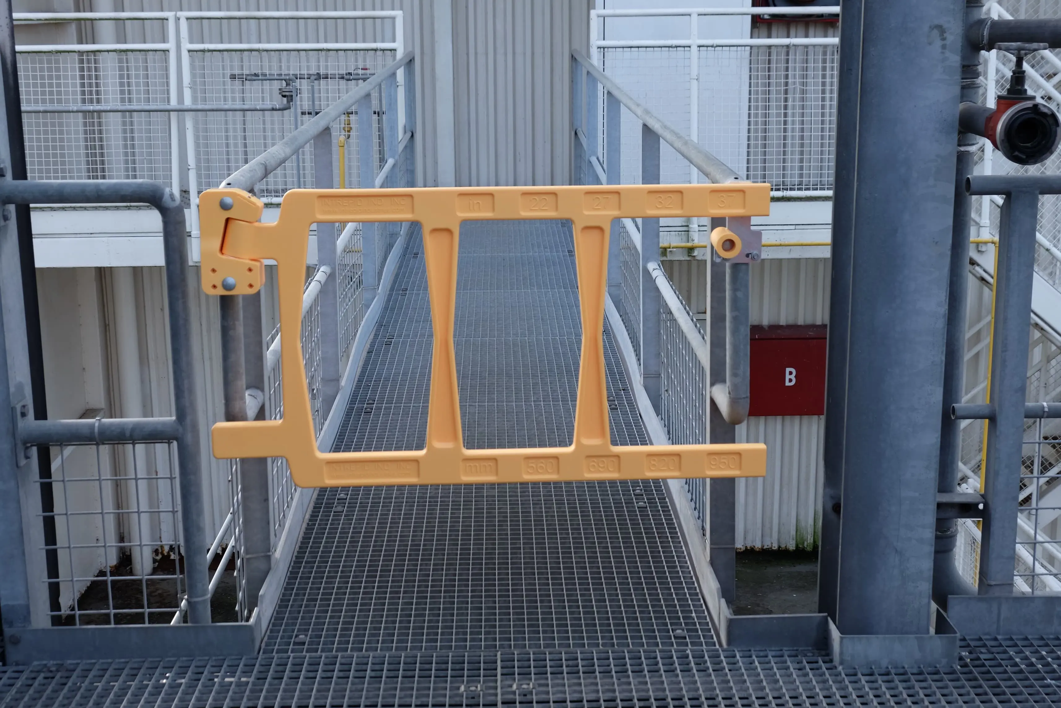 Bezpečnostní branka SafeGate s certifikací TÜV je vyrobena z materiálu PUR a slouží pro ochranu proti pádu na stavbách a v průmyslových areálech. Křídlo branky se uzavírá díky gravitaci.