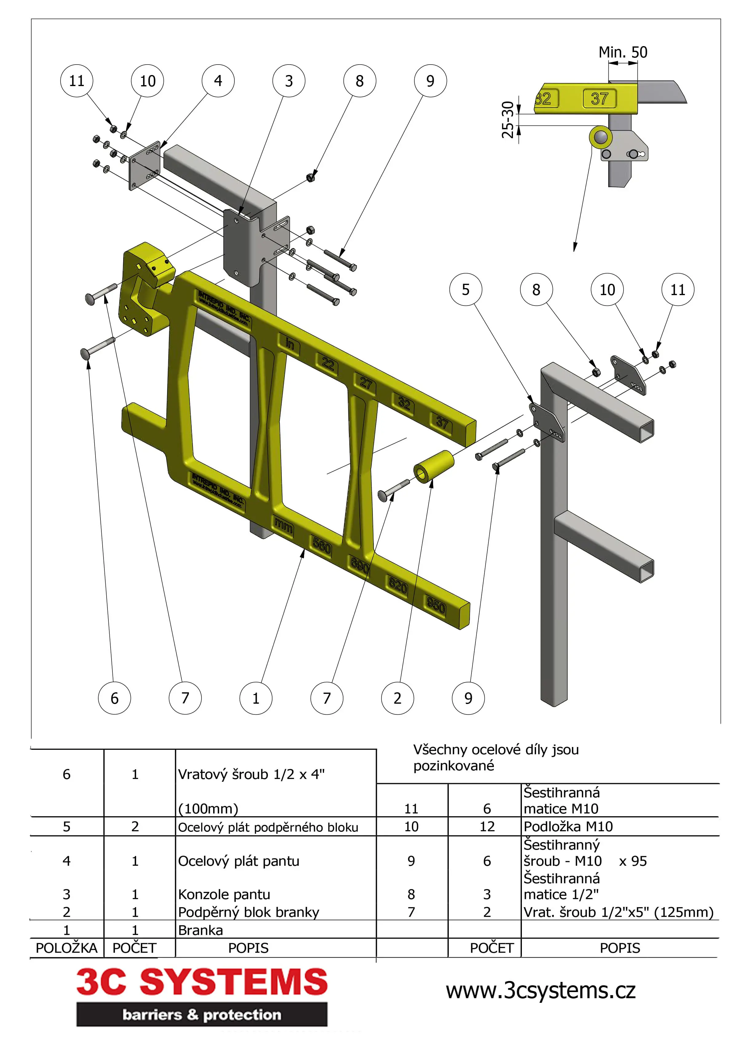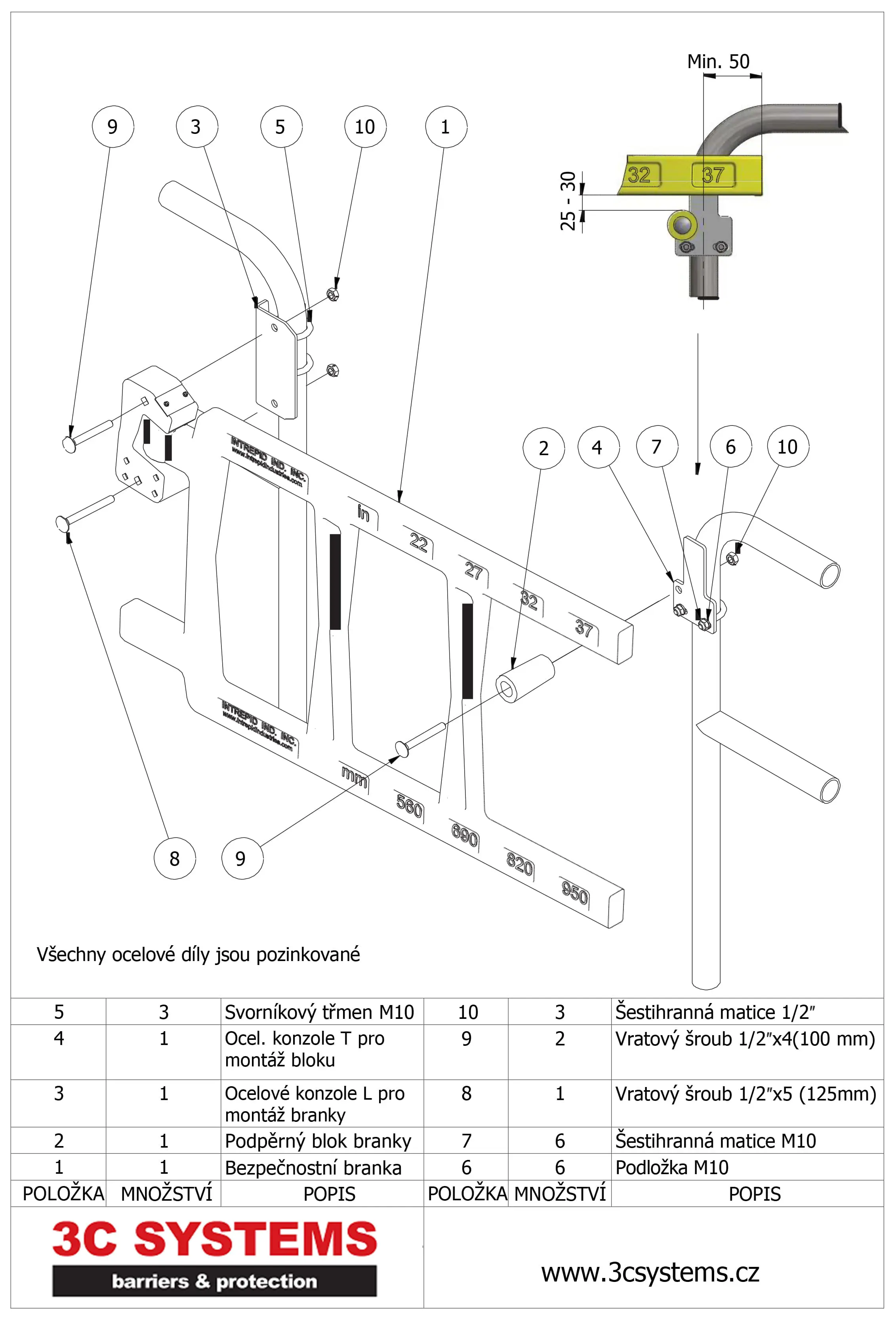 Bezpečnostní branka je bezúdržbová a nabízí celkovou odolnost proti korozi. Díky své nízké váze se snadno instaluje na ocelové zábradlí. Odolá nárazům o síle 180 kg, a to i v mínusových teplotách do -56 °C.