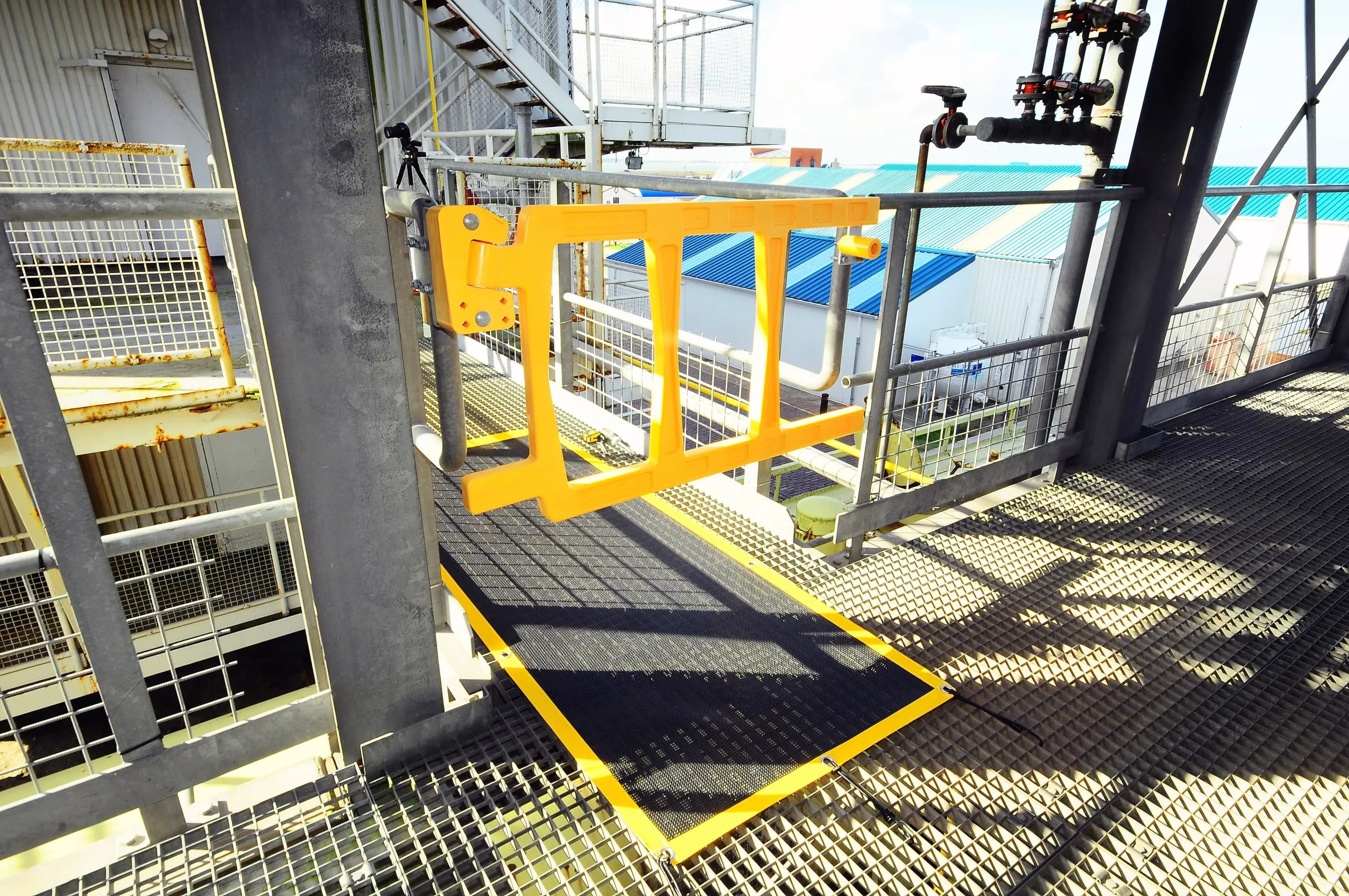 Bezpečnostní branka SafeGate s certifikací TÜV je vyrobena z materiálu PUR a slouží pro ochranu proti pádu na stavbách a v průmyslových areálech. Křídlo branky se uzavírá díky gravitaci.