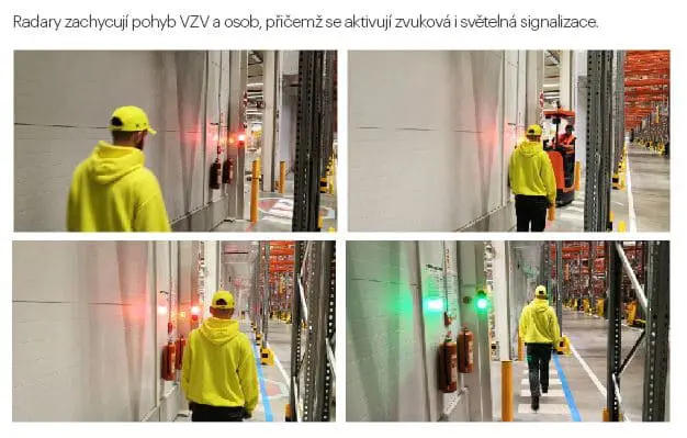 Kombinací radarů pro detekci pohybu osob a manipulační techniky, semaforů, LED projektoru pro podlahové značení a sirén, lze vytvořit elektronický systém pro vysoký stupeň zabezpečení ochrany zdraví a majetku ve skladovacích a průmyslových provozech. Možnost nastavení citlivosti radaru umožňuje aplikovat systém na kteroukoli manipulační techniku.