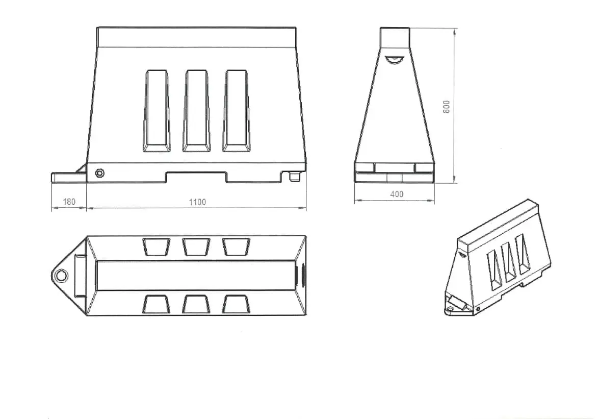 CD-RB80R | Silniční plastové svodidlo 80 – PE, červená, 800×400×1160 mm |