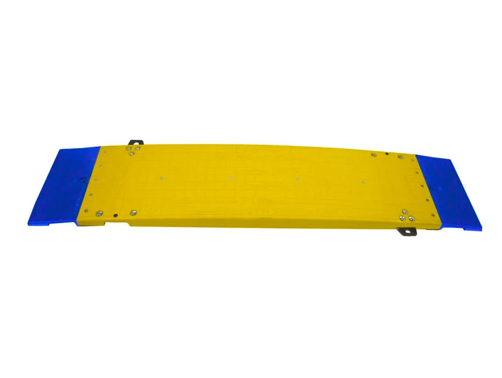 Přejezdová deska LowPro 23/05, kterou tvoří žlutá deska s modrým náběhem, kombinuje vysokou nosnost, rychlou instalaci a šetrnost k životnímu prostředí. Protiskluzový povrch udržuje maximální bezpečnost i za mokra. Díky pryžovým lemům Flexi-Edge je provoz výrazně tišší a zároveň se minimalizuje poškození hran komunikace. Desky mají plochý vrch, takže je lze efektivně stohovat a šetřit místo při skladování a přepravě.