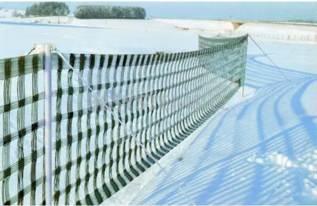 Silniční protisněhová zábrana slouží k ochraně vozovky proti závějím. Snadno se upevňuje do terénu, je stabilní při silném větru i za náročných povětrnostních podmínek. Její životnost je 20 let a více.