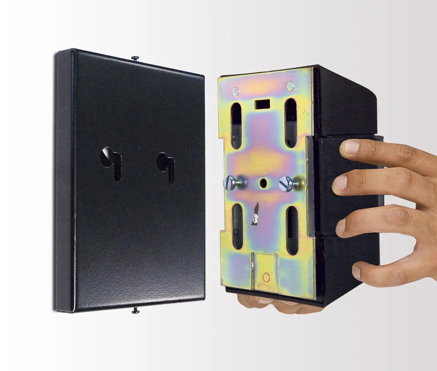 Semi-permanentní odnímatelný úchyt je určen pro nástěnnou kazetu zn. Tensabarrier se samonavíjecím pásmem délky 7,7 a 9 m.
