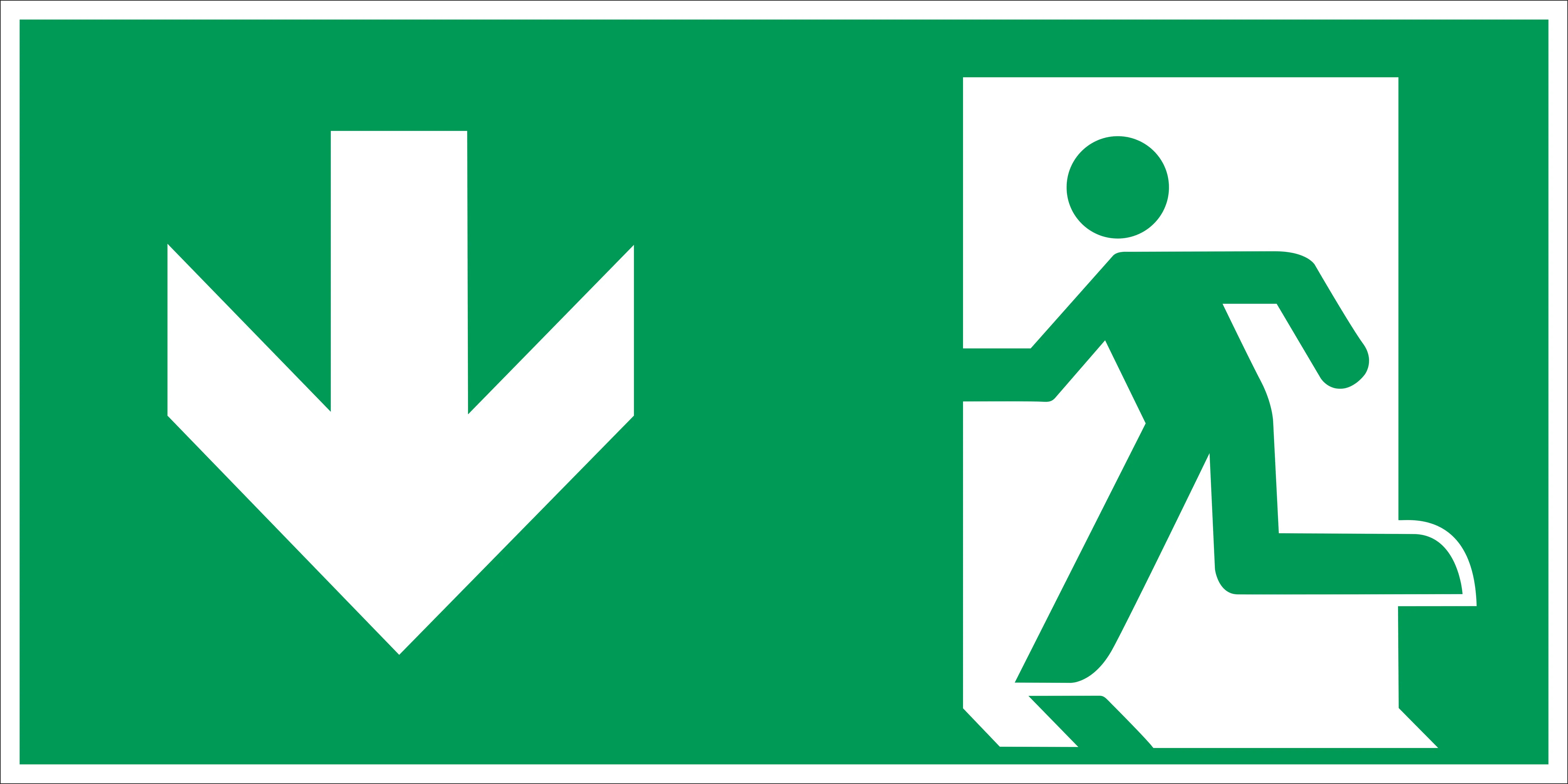 AT-SR43.DAN80.150 | Únikové značení, úniková cesta dolů – luminiscenční hliníkový kompozit, 300×150 mm |