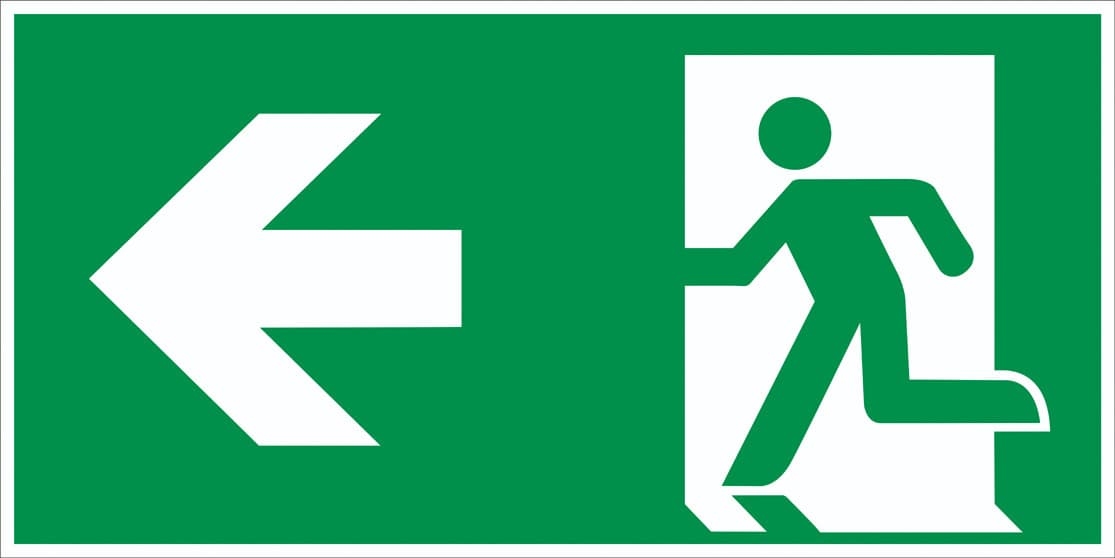 AT-SR41.DAN80.150 | Únikové značení, úniková cesta vlevo – luminiscenční hliníkový kompozit, 300×150 mm |
