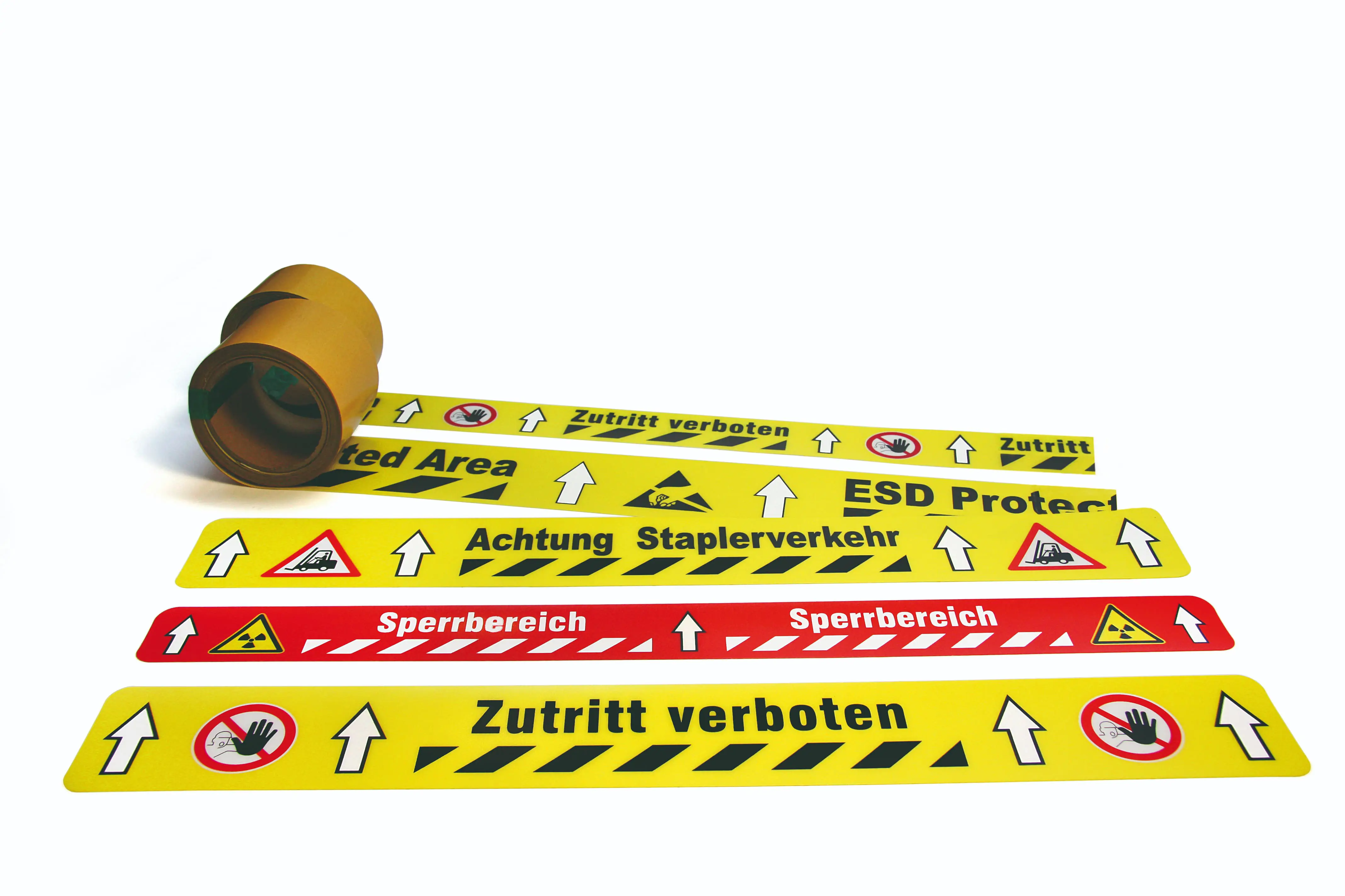 Univerzální podlahové značení s potiskem WT-5415 nabízí možnost individuálního designu (text a znaky jsou volně kombinovatelné). Využívá se pouze pro vnitřní prostory s hladkým povrchem. Podlahové značení můžete použít pro značení ploch ve výrobnách, skladech či prodejních prostorech.