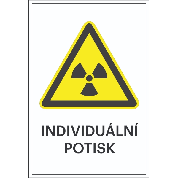 AT-SWK03.DA90.750 | Varovné značení, varování před radioaktivními látkami nebo ionizujícím zářením, s možností individuálního textu – hliníkový kompozit, 500×750 mm |
