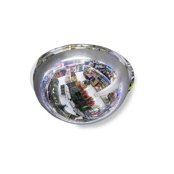 Vypouklé zrcadlo nabízí pozorování pod úhlem 360° a využijeme jej pro dokonalý přehled v interiéru prodejen, skladů a výrobních prostor. Je vyrobeno z akrylu, který je vůči nárazu o 70 % odolnější než sklo. Tento produkt má kvalitní zrcadlový odraz pro celkovou vizuální kontrolu na nepřehledných místech.