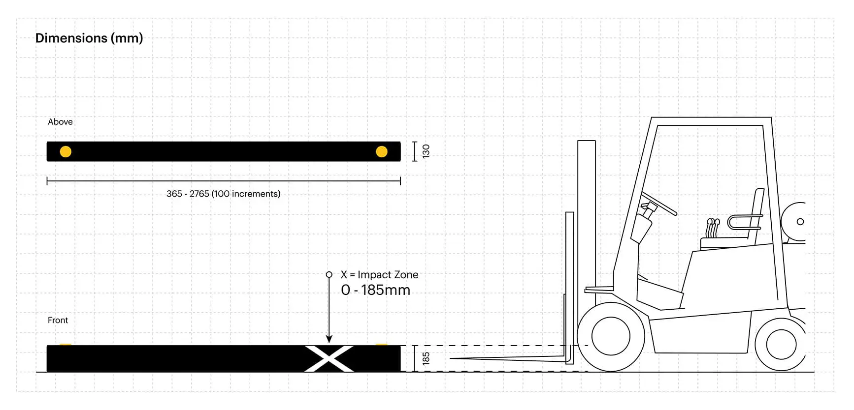 Zábrana ForkGuardTM Kerb Barrier je kvůli své 18 cm výšce předurčena k ochraně stěn a zařízení na úrovni podlahy ve výrobě a skladech s nižší až střední intenzitou provozu.