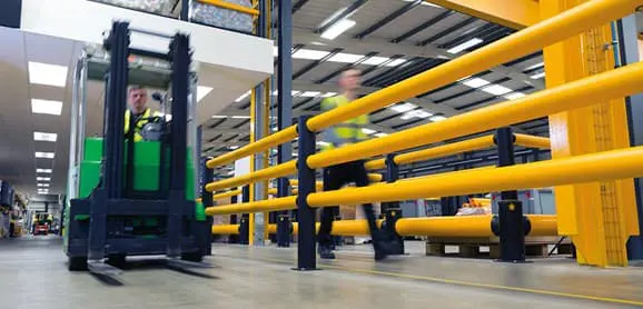 V místech, kde hrozí riziko nárazu do chodidel (např. otáčení VZV, doraz palet) doporučujeme zábrany pro chodce kombinovat s tzv. obrubníky řady iFlex ForkGuard Kerb Barrier.