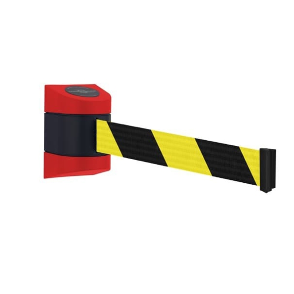 Nástěnná kazeta zn. Tensabarrier se samonavíjecím pásmem o délce 4,6 využijte v místech pro optické vymezení prostoru a zamezení vstupu. Tak jako u sloupků, i u kazet si můžete vybrat barvu pásma dle vzorníku a koncovku pásma dle účelu použití. Koncovky pásma kazet lze propojovat s mobilními sloupky s pásmem.