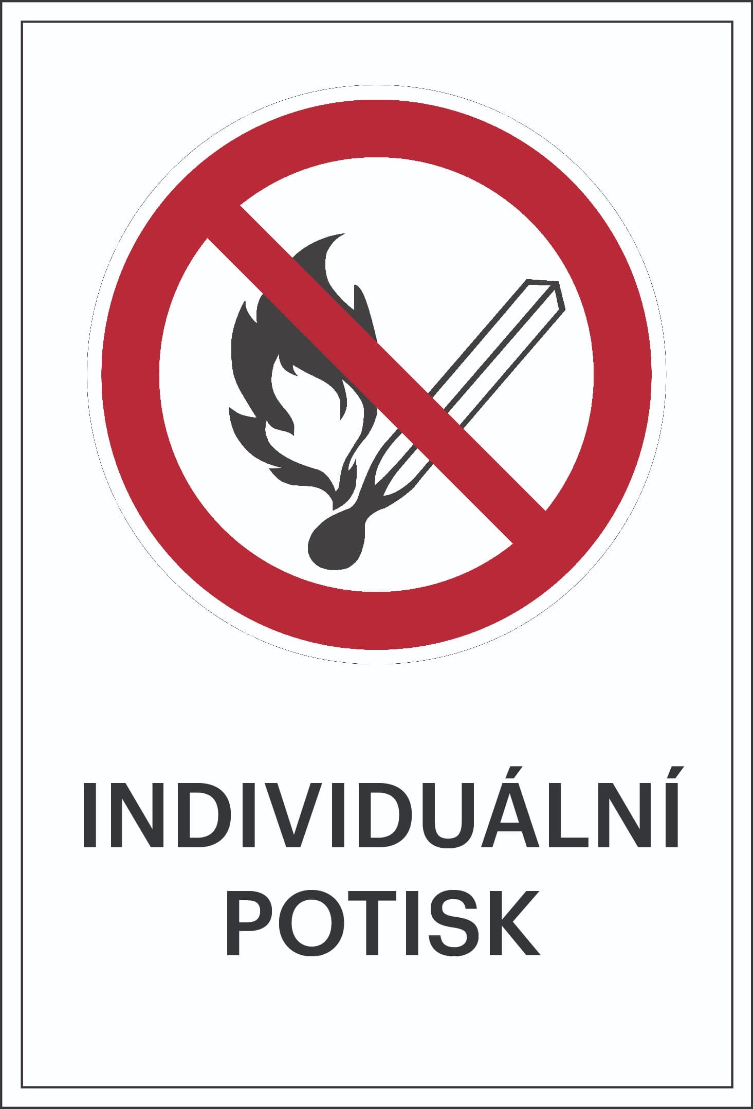 AT-SVK05.DA90.750 | Zákazové značení, zákaz otevřeného ohně, s možností individuálního textu – hliníkový kompozit, 500×750 mm |