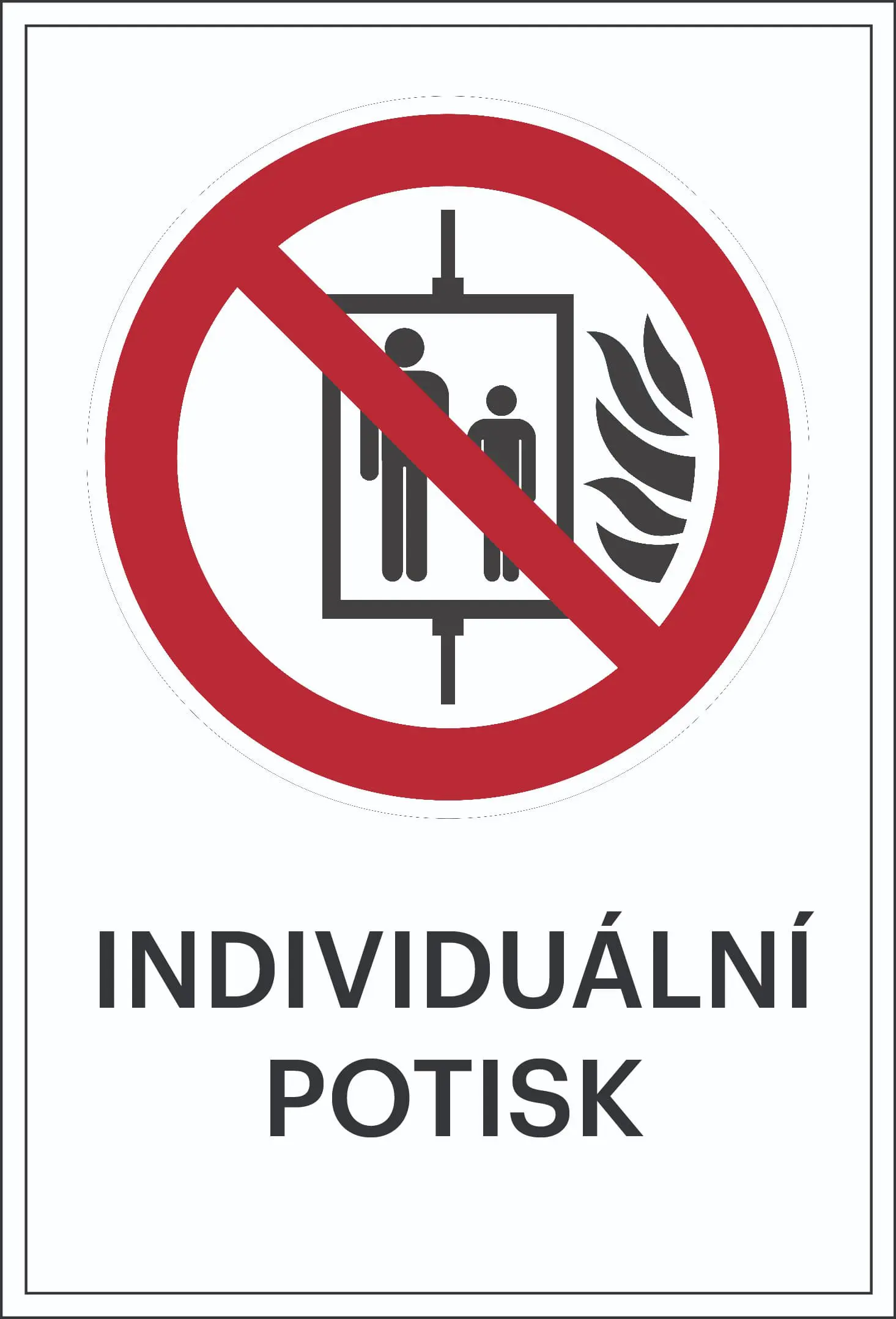 AT-SVK32.FAB99.150 | Zákazové značení, při požáru nepoužívat výtah, s možností individuálního textu – fólie, 100×150 mm |