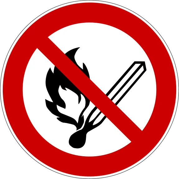 AT-SV05.CA01.600 | Zákazové značení, zákaz otevřeného ohně – polykarbonát, pr. 600 mm |