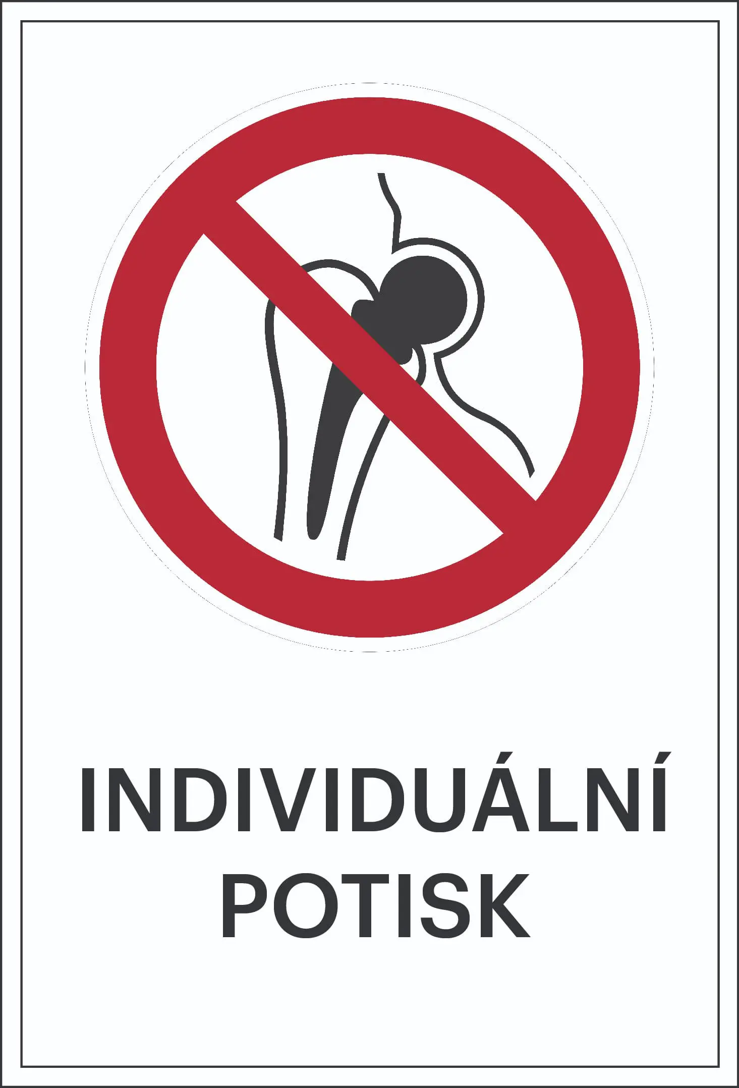 AT-SVK27.FAB99.150 | Zákazové značení, zakázáno osobám s kovovými implantáty, s možností individuálního textu – fólie, 100×150 mm |