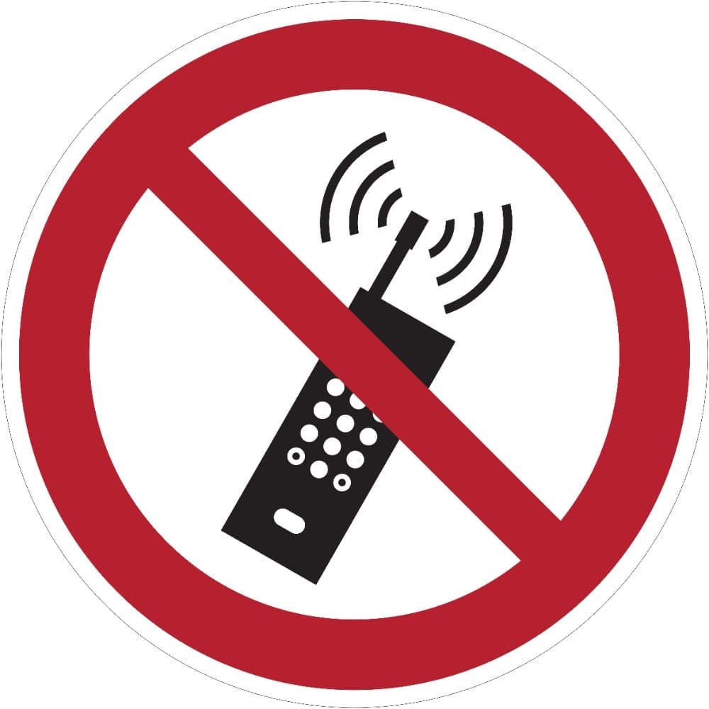 AT-SV20.CA01.400 | Zákazové značení, mobilní telefony musí být vypnuty – polykarbonát, pr. 400 mm |