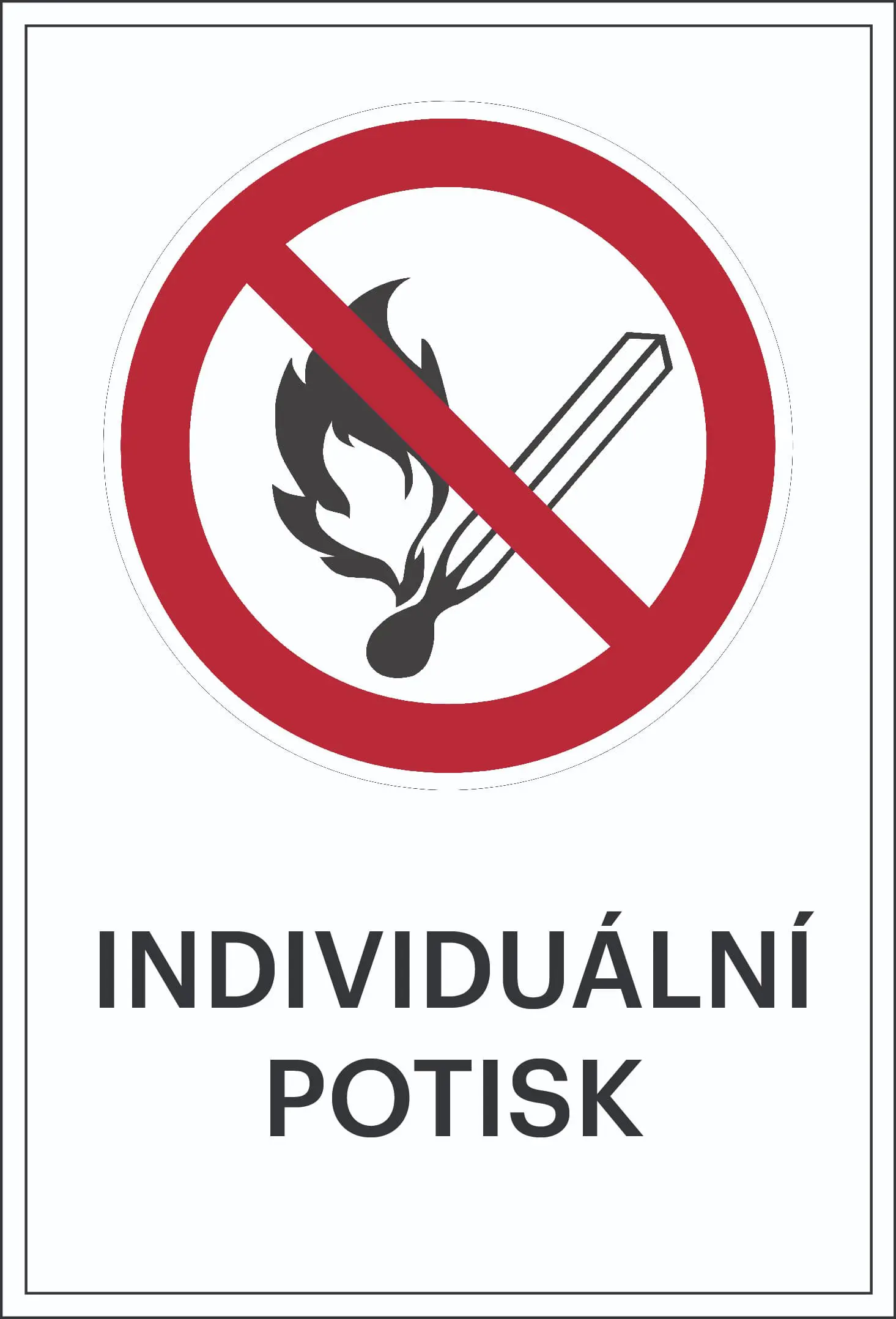 AT-SVK05.DA90.450 | Zákazové značení, zákaz otevřeného ohně, s možností individuálního textu – hliníkový kompozit, 300×450 mm |