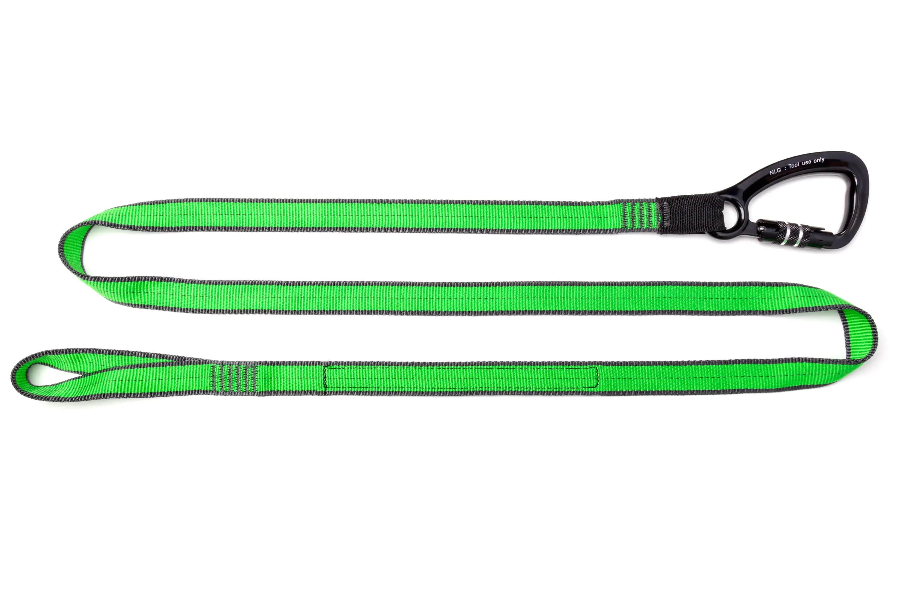 Závěsný popruh NLG Lanyard s jednou karabinou a nosností 38 kg – nylon, zeleno-černá